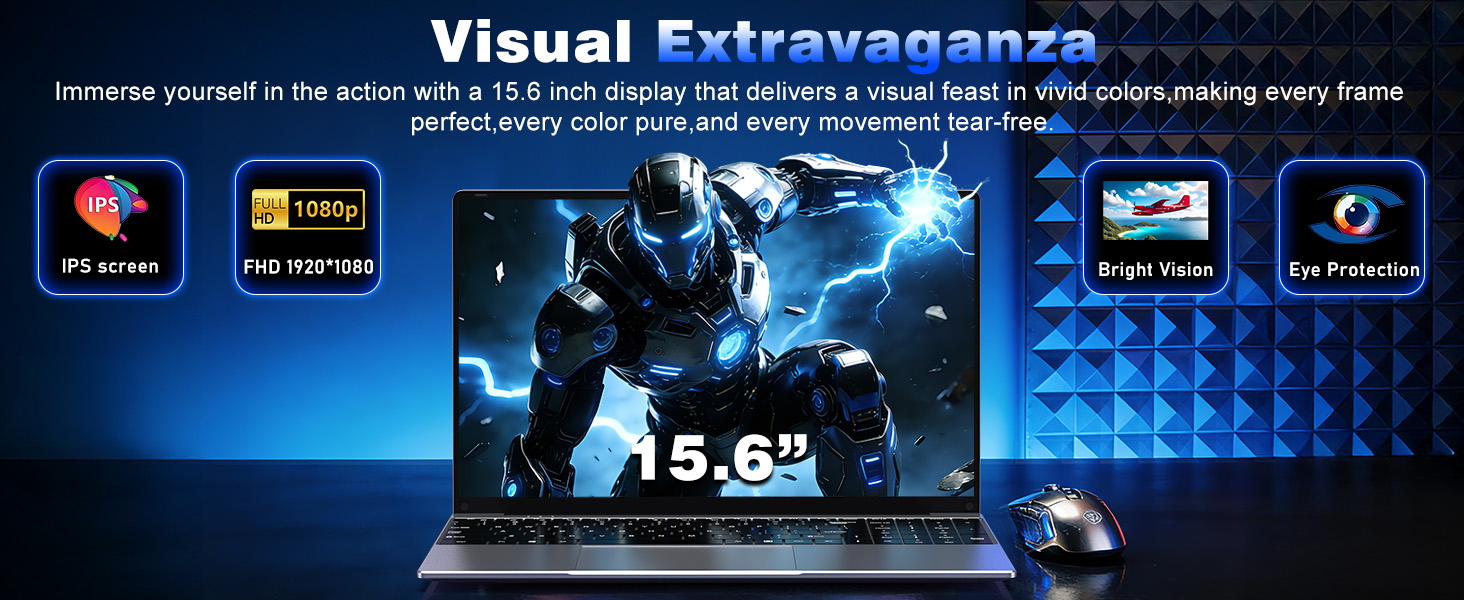 - 【Ultra-Realistic 1080P Display】This ultra-thin notebook features a 15.6-inch Full HD screen with a 1920×1080 high resolution, large IPS 16:9 display panel. It restores true color essence, protects eyesight, and delivers sharp, lifelike images in millions of vibrant colors.