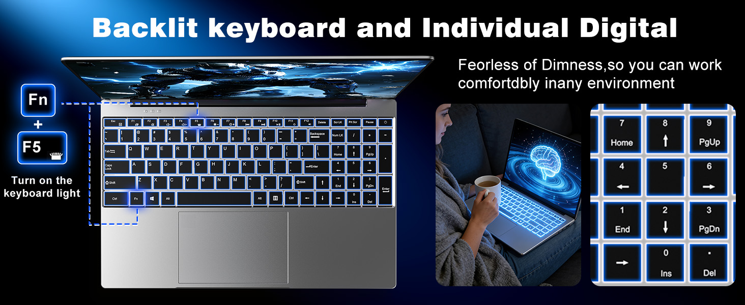 - 【Boost Efficiency Day & Night】The ergonomically designed backlit keyboard features adjustable brightness levels, allowing you to type effortlessly in dim environments like night offices or airplane cabins. The integrated full-size numeric keypad eliminates the hassle of switching input methods, making data entry, spreadsheet editing, and financial calculations faster and more accurate—ideal for professionals, students, and gamers alike.