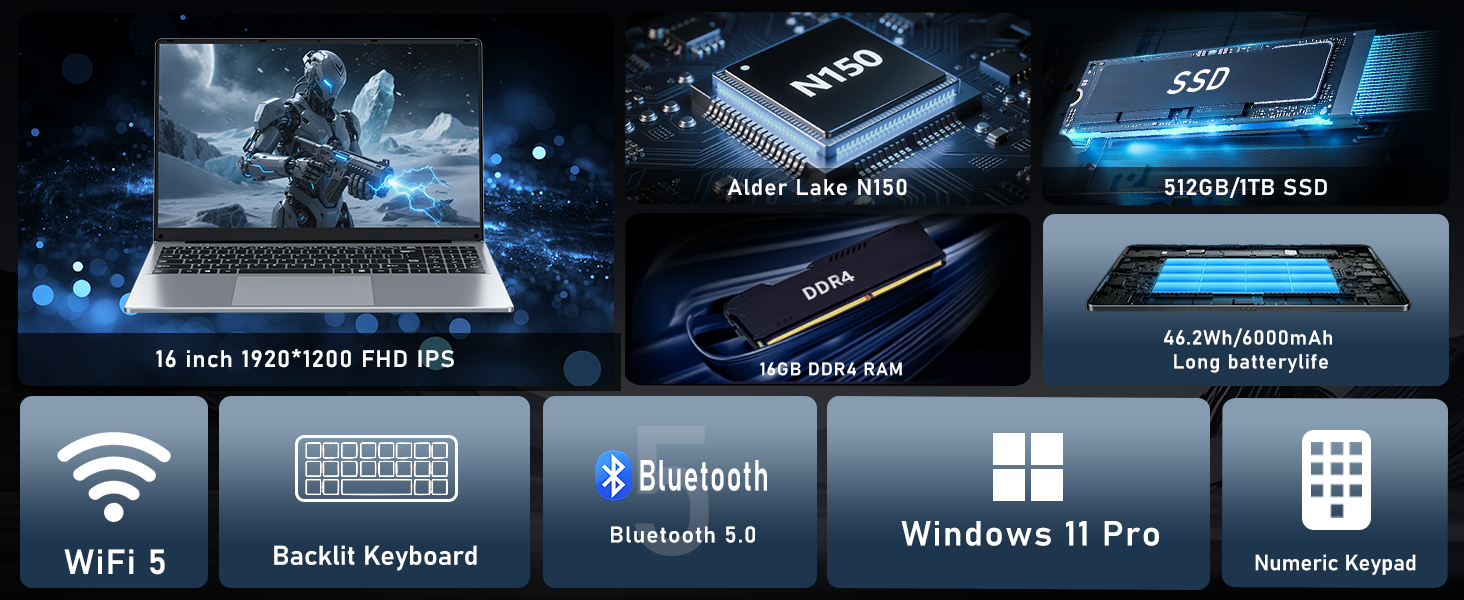 - [Advanced Processor]: The laptop features the latest 13th generation Alder Lake N150 processor with 3.6GHz boost frequency, 4 cores and 4 threads, providing powerful performance for multitasking, streaming, and gaming.