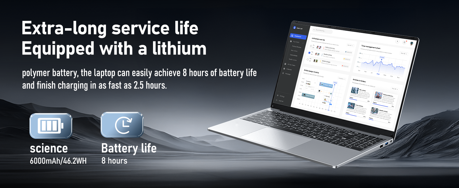 - [Long Battery Life and Convenience]:This 16 inch laptop computer is equipped with a 6000mAH Battery rechargeable battery with up to 6 hours of battery life, making it easy to save power for a long time. And at only 0.8 Inch slim body, 3.5pounds weight, this thin and lightweight laptop is portable to carry.