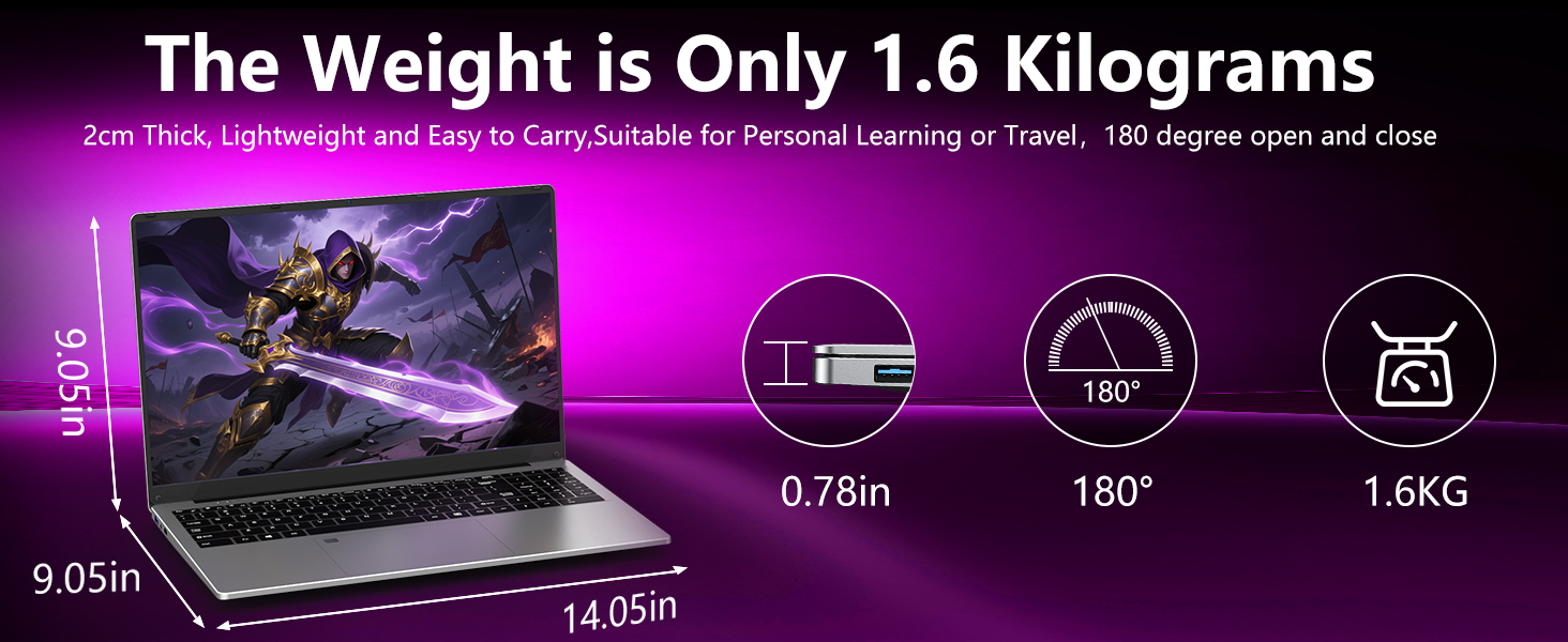 - [Long Battery Life and Convenience]:This 16 inch laptop computer is equipped with a 46.2Wh Battery rechargeable battery with up to 6 hours of battery life, making it easy to save power for a long time. And at only 0.8 Inch slim body, 3.5pounds weight, this thin and lightweight laptop is portable to carry.