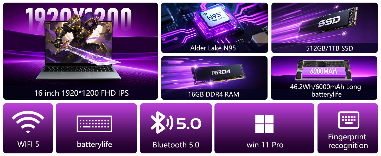 - [Advanced Processor]: The laptop features the latest 12th generation Alder Lake N95 processor with 3.4GHz boost frequency, 4 cores and 4 threads, providing powerful performance for multitasking, streaming, and gaming.