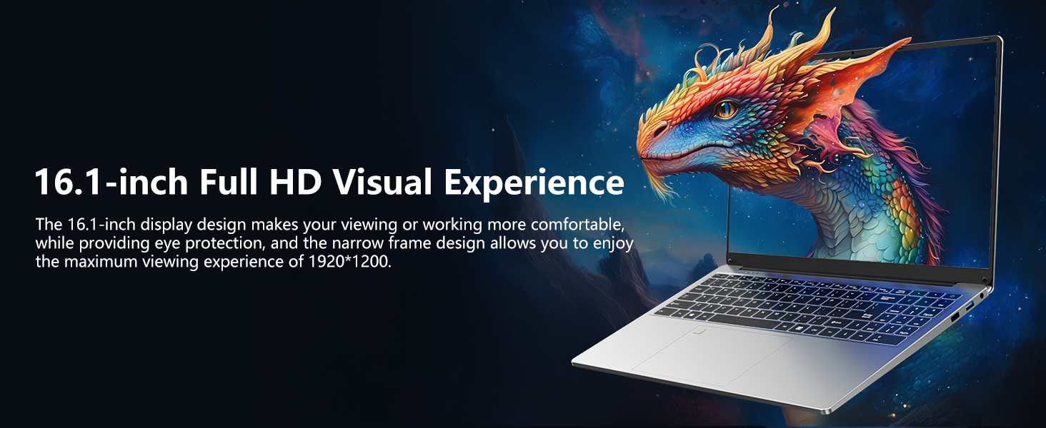 - Dive into Visual Brilliance:Immerse yourself in a world of brilliance on the 16.0" FHD IPS display, boasting an enchanting 1920x1200 resolution. The 0.2-inch micro-bezel and an impressive 90% screen-to-body ratio, every pixel is a vivid masterpiece that captivates your senses.
