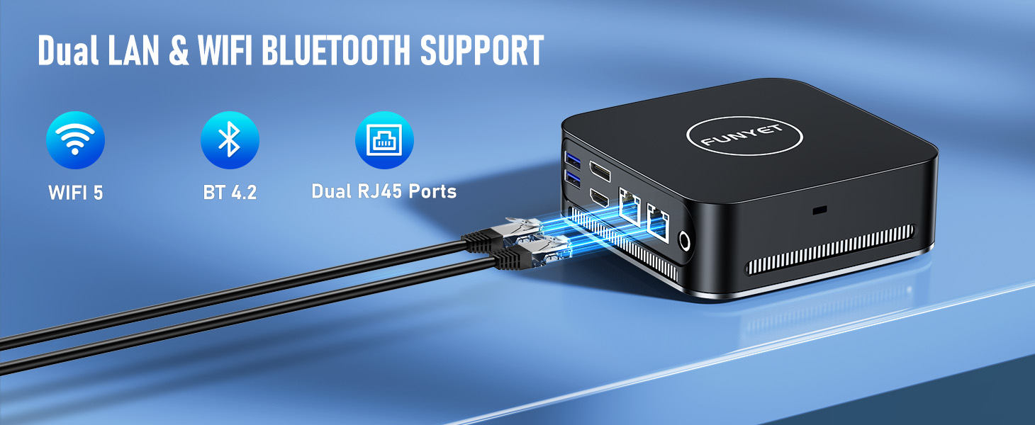 - 【🎮 UHD Graphics & Multi-Port Connectivity】 Equipped with Intel UHD Graphics (max 1200MHz) and a variety of ports including 1 x HDMI, 4 x USB 3.0, 1 x Type-C, 1 x HDMI2.0, 1 x DP port, 2 x RJ45 Ethernet ports, and 1 x DC 5.5, allowing for seamless connectivity and multitasking.