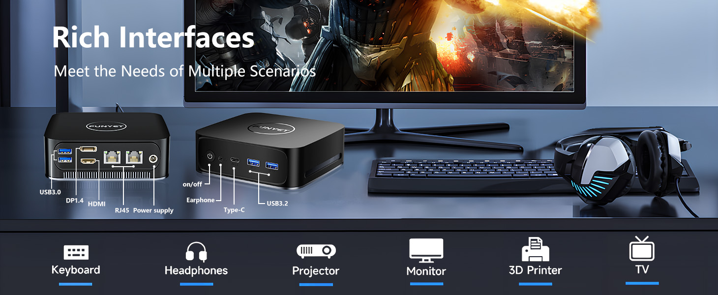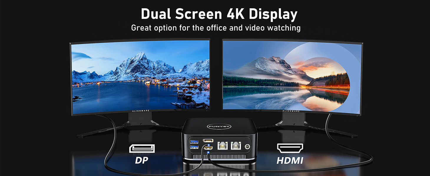 - 【🚀 Powerful Performance】The FUNYET Mini PC features an Intel Alder Lake N95 processor with 4 cores and 4 threads, delivering powerful single and multi-threaded performance up to 3.4GHz. Ideal for demanding workloads, gaming, and multimedia tasks.