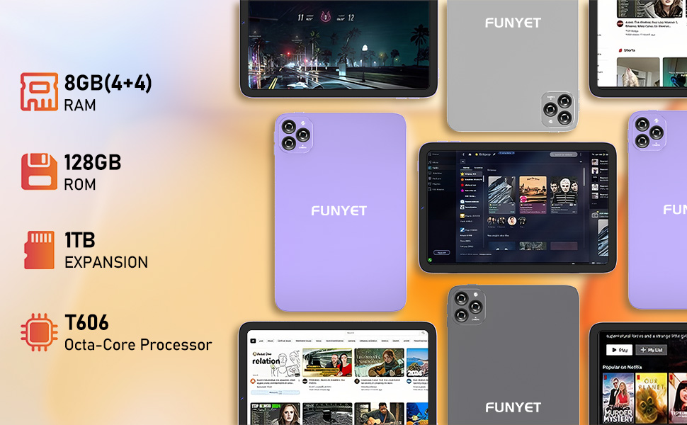 - 【Smooth Performance with Octa-Core Power】Powered by the Spreadtrum T606 Octa-core processor (Dual-core A75 1.6GHz + Six-core A55 1.6GHz) and Mali-G57 GPU, this tablet ensures fast and efficient performance for multitasking, gaming, and streaming.